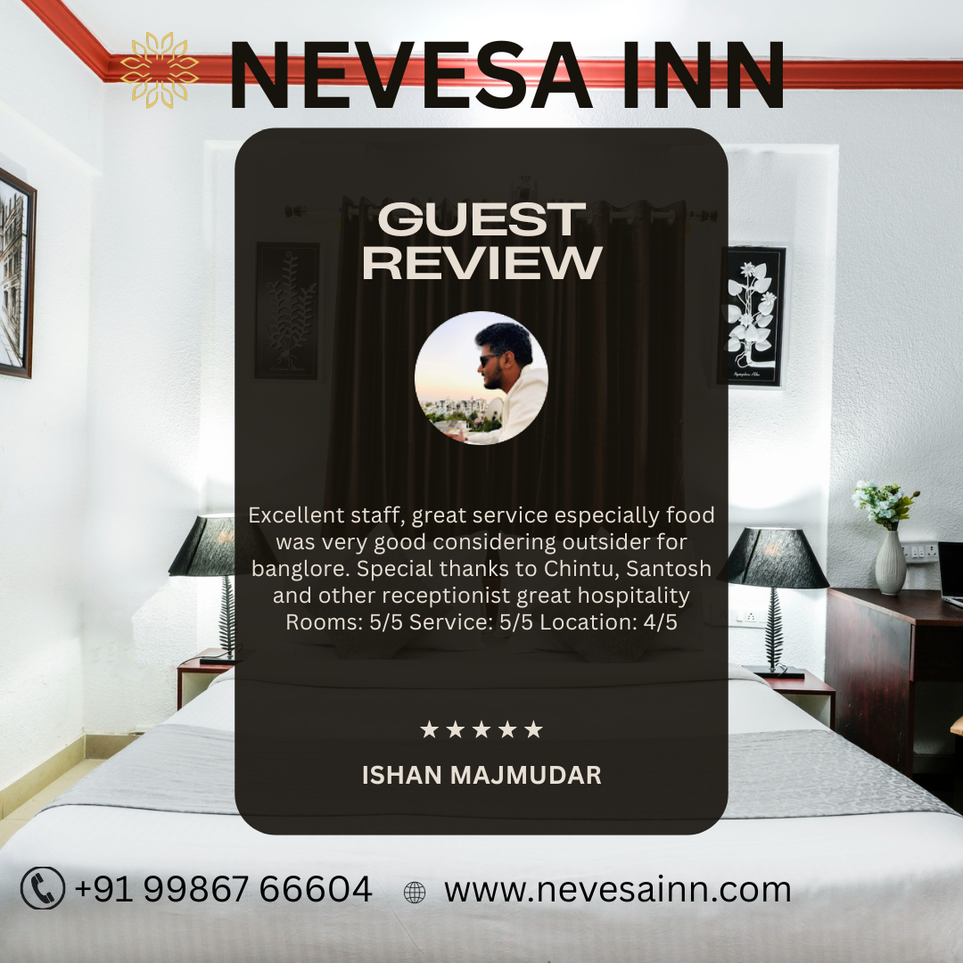 A huge thank you to our guest for this incredible feedback! We are so glad we could make you feel at home here in Bangalore. It warms our hearts to know that our food and service stood out, and we're especially proud of team members like Chintu and Santosh who go the extra mile. We've passed along your kind words—they truly make our day! We can't wait to welcome you back. The Verdict: Rooms: ⭐️⭐️⭐️⭐️⭐️ (5/5) Service: ⭐️⭐️⭐️⭐️⭐️ (5/5) Location: ⭐️⭐️⭐️⭐️ (4/5) For Bookings Call : +91 99867 66604 E Mail : bookings@nevesainn.com URL : www.nevesainn.com #nevesainn #GuestReview #BangaloreHospitality #HotelFood #StaffAppreciation #ServiceExcellence #bangaloretravel #besthotelsinaecslayout #besthotelsinkundanahalli #besthotelsinmarathalli