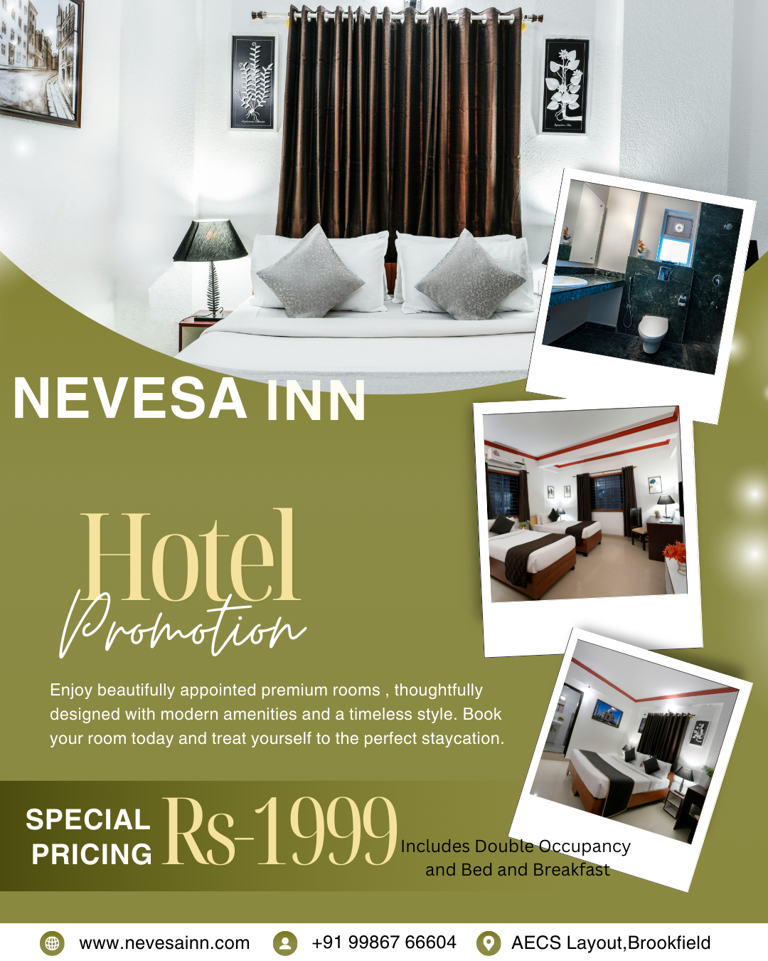 Escape the ordinary and treat yourselves to a cozy retreat at Nevesa Inn! Enjoy double occupancy on our exclusive Bed & Breakfast plan for just ₹1, 999. ✅ Comfortable stay for two ✅ Delicious breakfast included ✅ Warm hospitality & serene vibes Perfect for a quick weekend break or a sweet spontaneous trip! 🍃☕ Book now and make memories: 📞 Call: +91 99867 66604 📧 Email: bookings@nevesainn.com 🌐 Visit: www.nevesainn.com Hurry, offer for a limited time only! 💫 #NevesaInn #BedAndBreakfast #CoupleGetaway #WeekendEscape #TravelDeal #AffordableStay #RomanticRetreat #BookNow #SpecialOffer #besthotelsinaecslayout #besthotelsinbrookfield #besthotelsinmarathalli #hotelsnearme #hotels